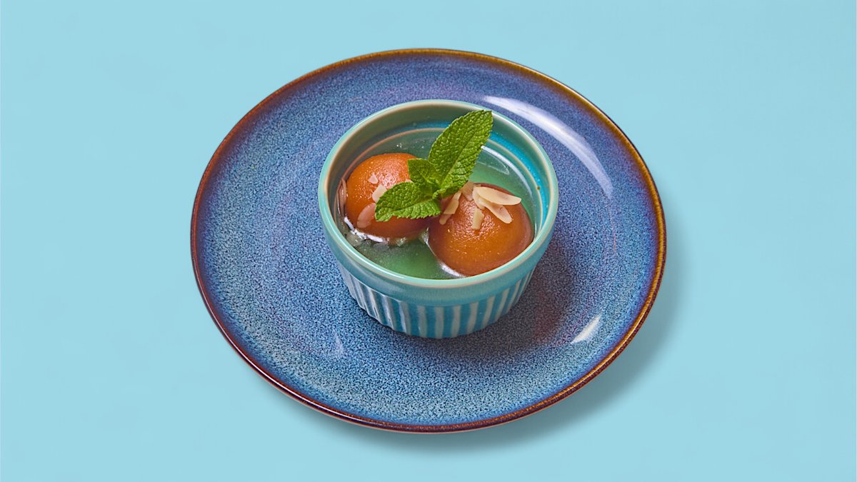 Indisches Joghurtgetränk mit pürierter Mango, süß und erfrischend.