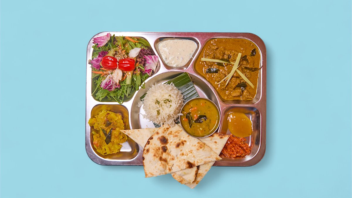alle Sets werden mit Reis, Salat, Raita, GemĂĽse und Brot serviert