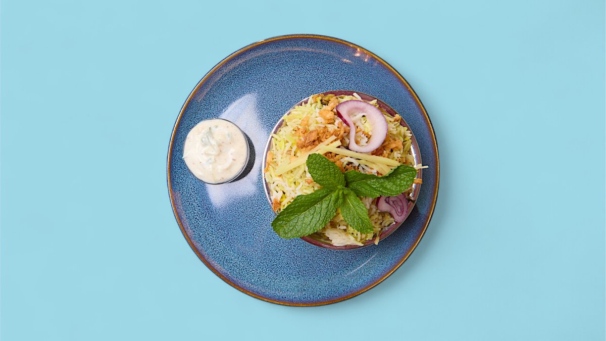 alle Gerichte werden mit Reis, Raita, 2x GemĂĽsesorten, Salat und Brot serviert