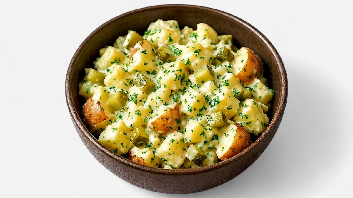 Kartoffelsalat mit Mayo, Zwiebeln, Petersilie, Gewürzgurken