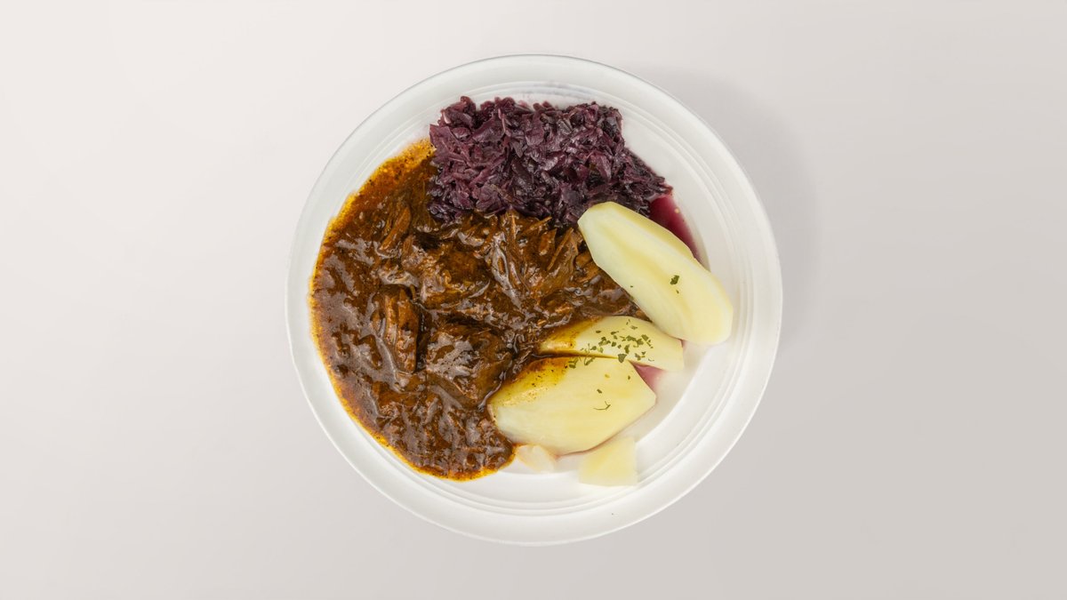 Rindergulasch mit Rotkohl und Kartoffeln