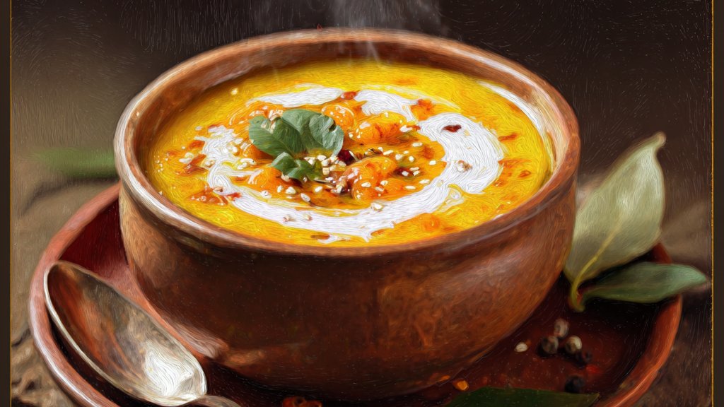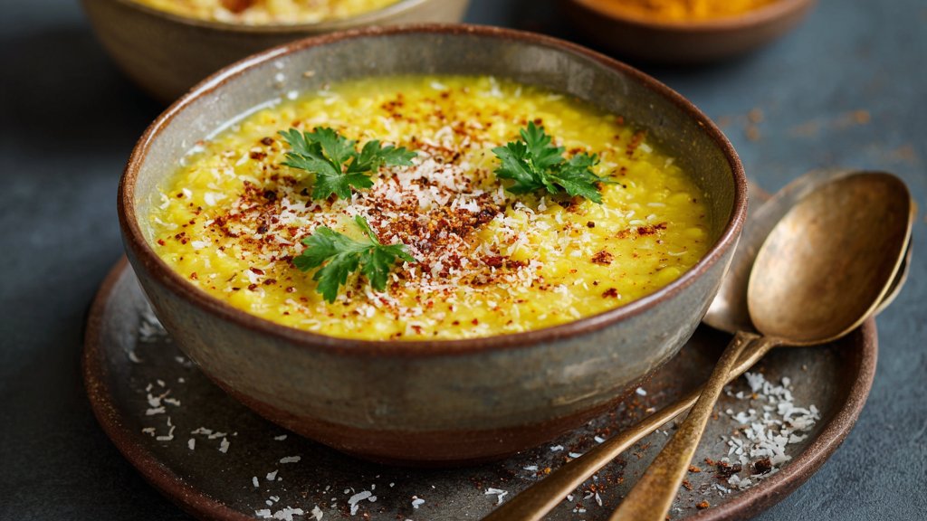 linsensuppe nach südindischer Art mit Kokosraspeln