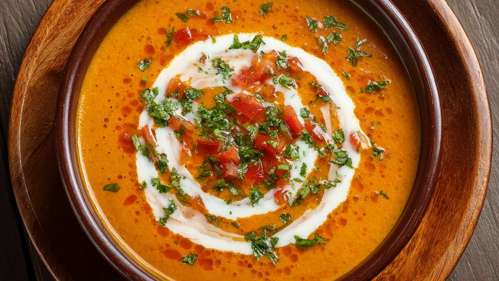Tomatensuppe verfeinert mit Sahne und einer leichten Basilikumnote