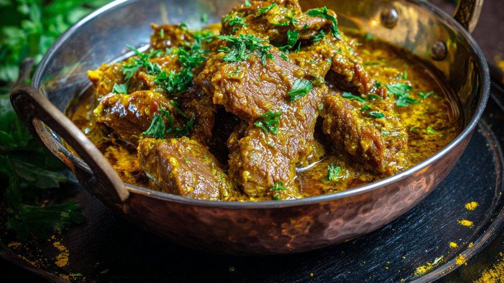 zartes Lammfleisch in Currysauce nach indischer Art zubereitet