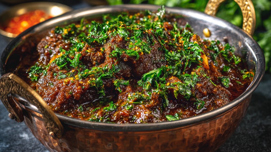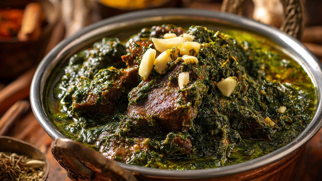 eine wundervolle Kombination aus eingelegtem Lammfleisch Spinat Ingwer Knoblauch und speziellen indischen Gewürzen – nach “Punjabi-Art“ gegart