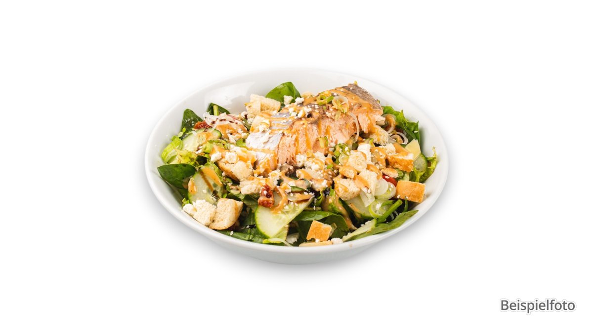 großer gemischter Salat mit Lachsstreifen