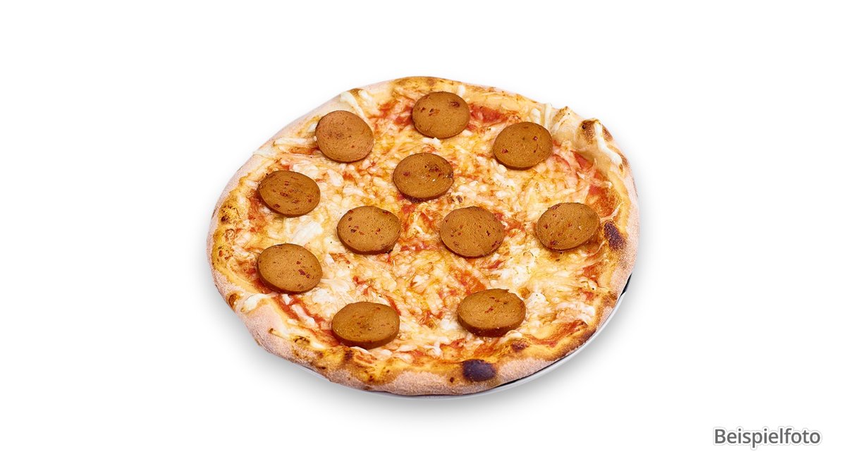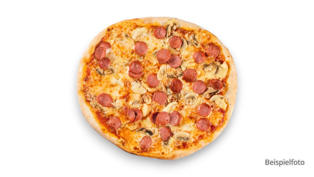 alle Pizzen sind ca. Ø 33 cm groß und werden mit Tomatensoße und Käse belegt; auf Wunsch auch als Dinkel-Vollkomteig und extra Soße erhältlich