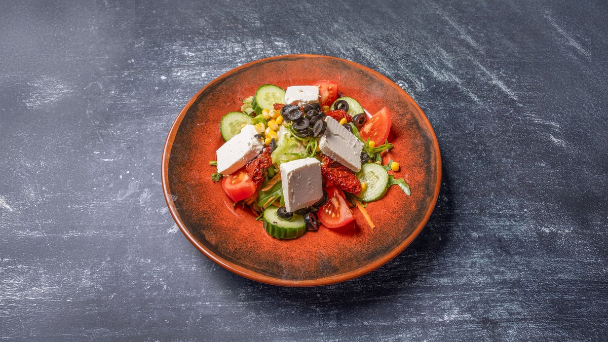 gemischter Salat mit Käse und getrockneten Tomaten