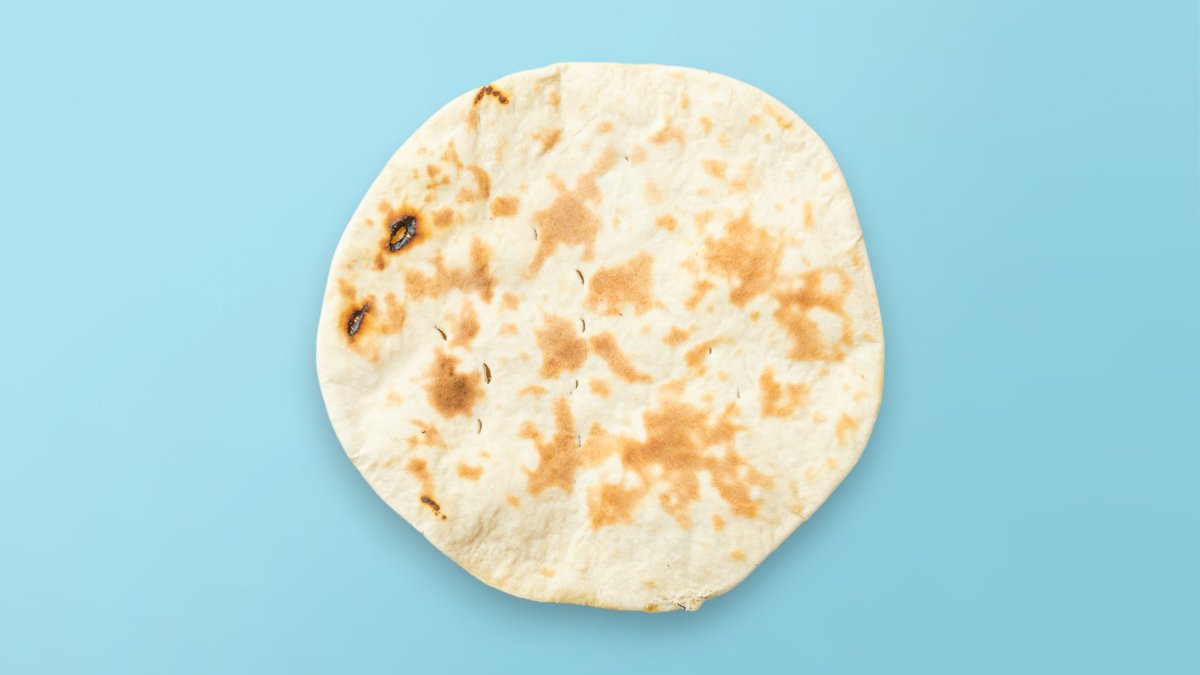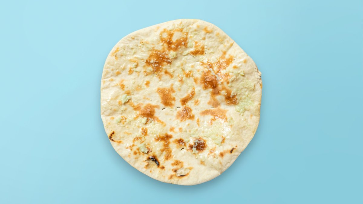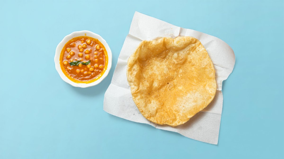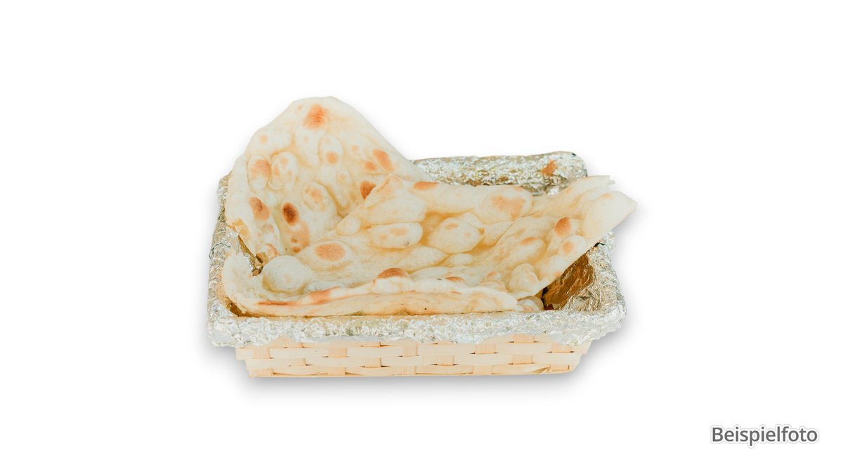 pikant gewürzt Brot aus Linsenmehl und Teigtaschen mit Kartoffeln sowie Kichererbsen