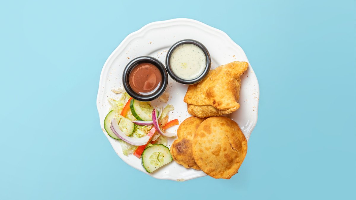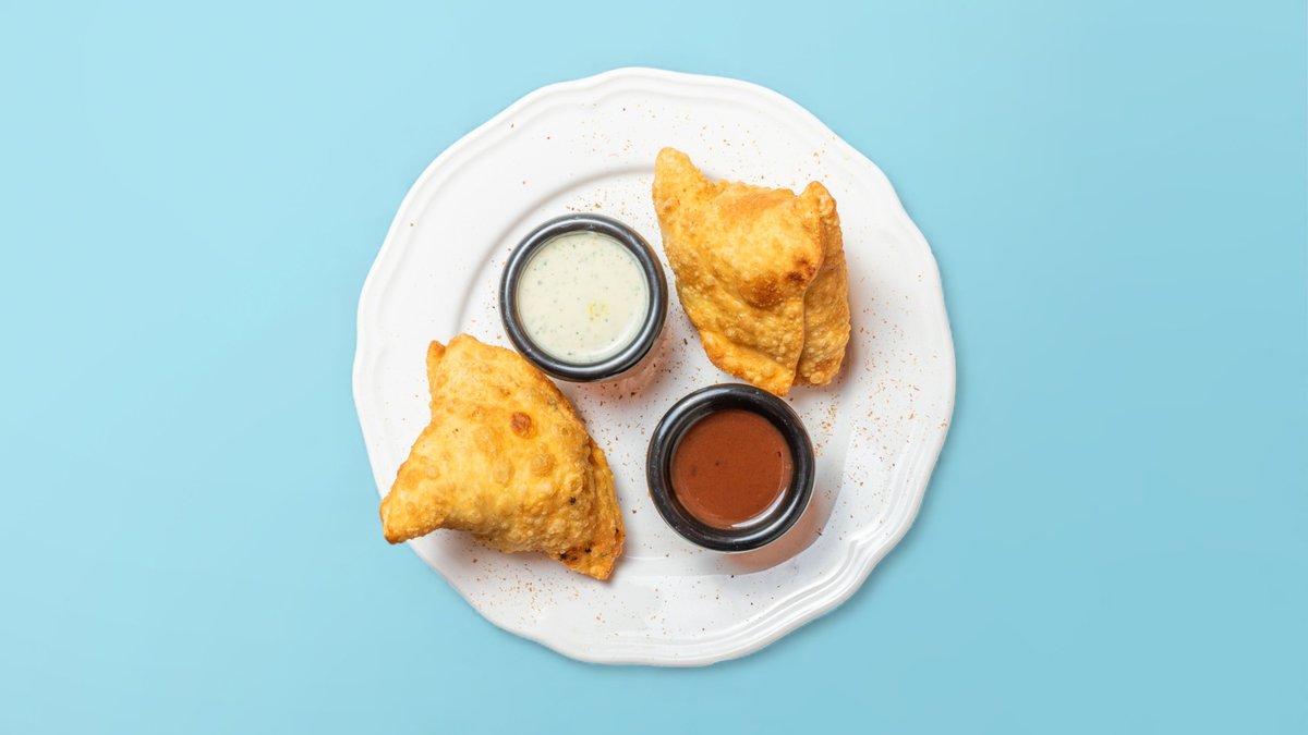2 Stück pikant gewürzt Teigtaschen gefüllt mit Kartoffeln und Kichererbsen