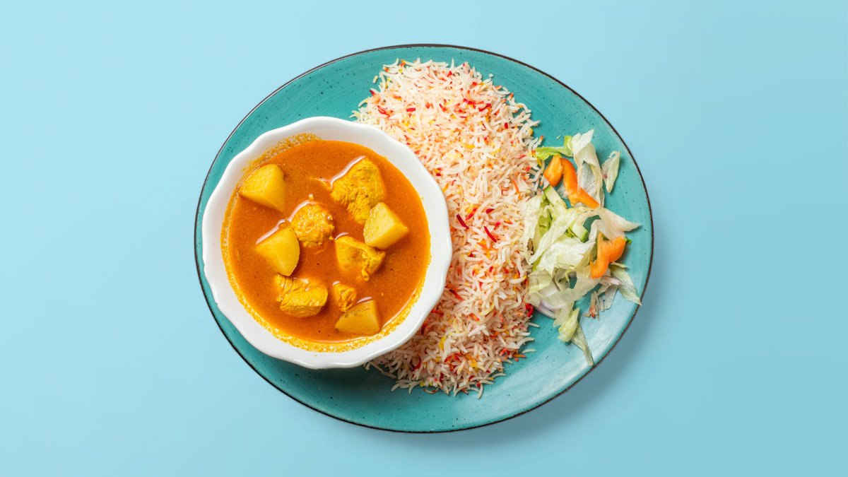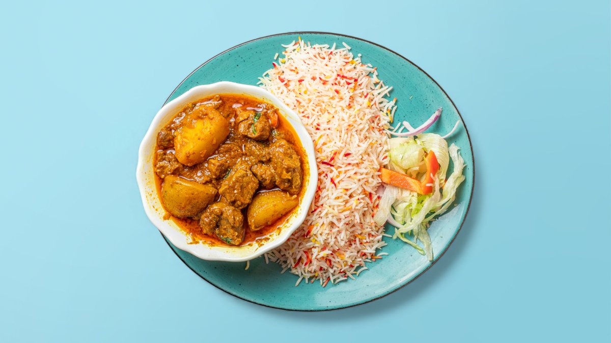 Lammfleisch mit Kartoffeln in Currysoße nach traditioneller Art gewürzt