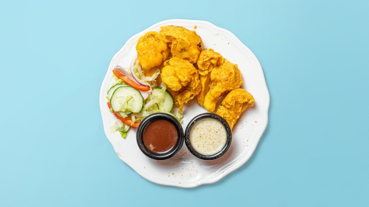 gewürzt frittierter Blumenkohl in Kichererbsenteig