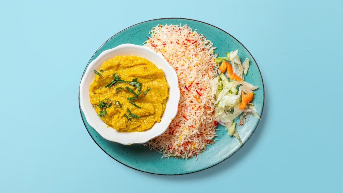 Basmati-Reis mit Lammfleisch und Saisongemüse nach traditioneller Art gewürzt