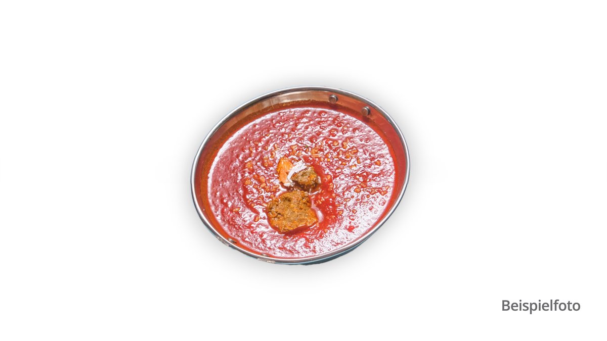mit Gemüse, Knoblauch, Ingwer, Curry-Tomatensoße und einem Schärfegrad deiner Wahl