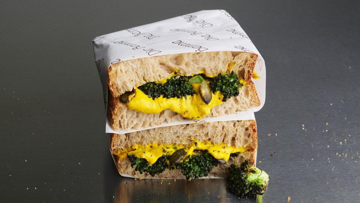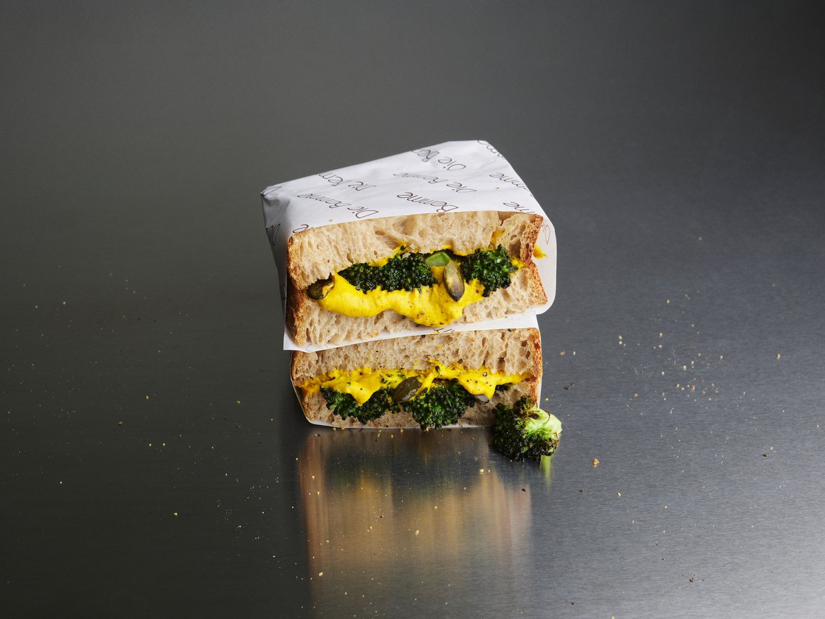 mit geröstetem Brokkoli auf frischem Sauerteigbrot