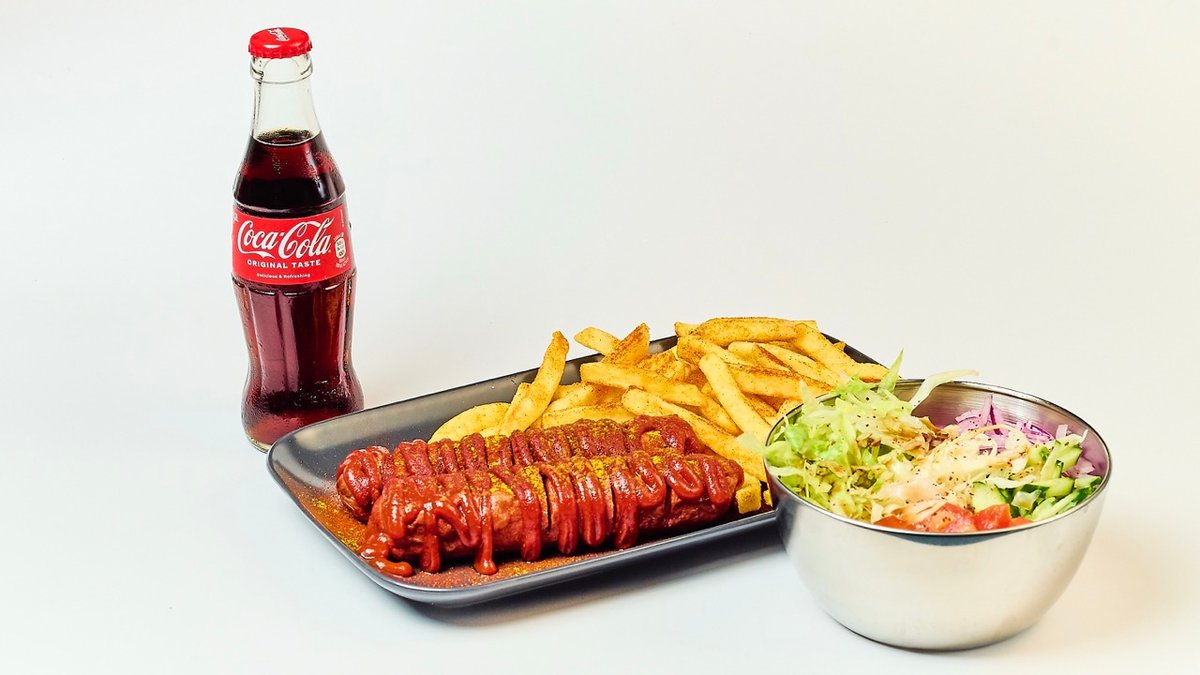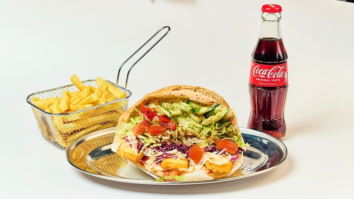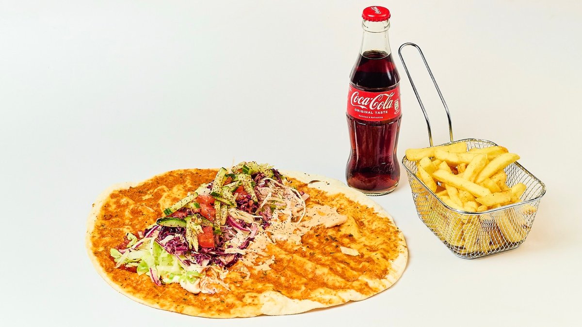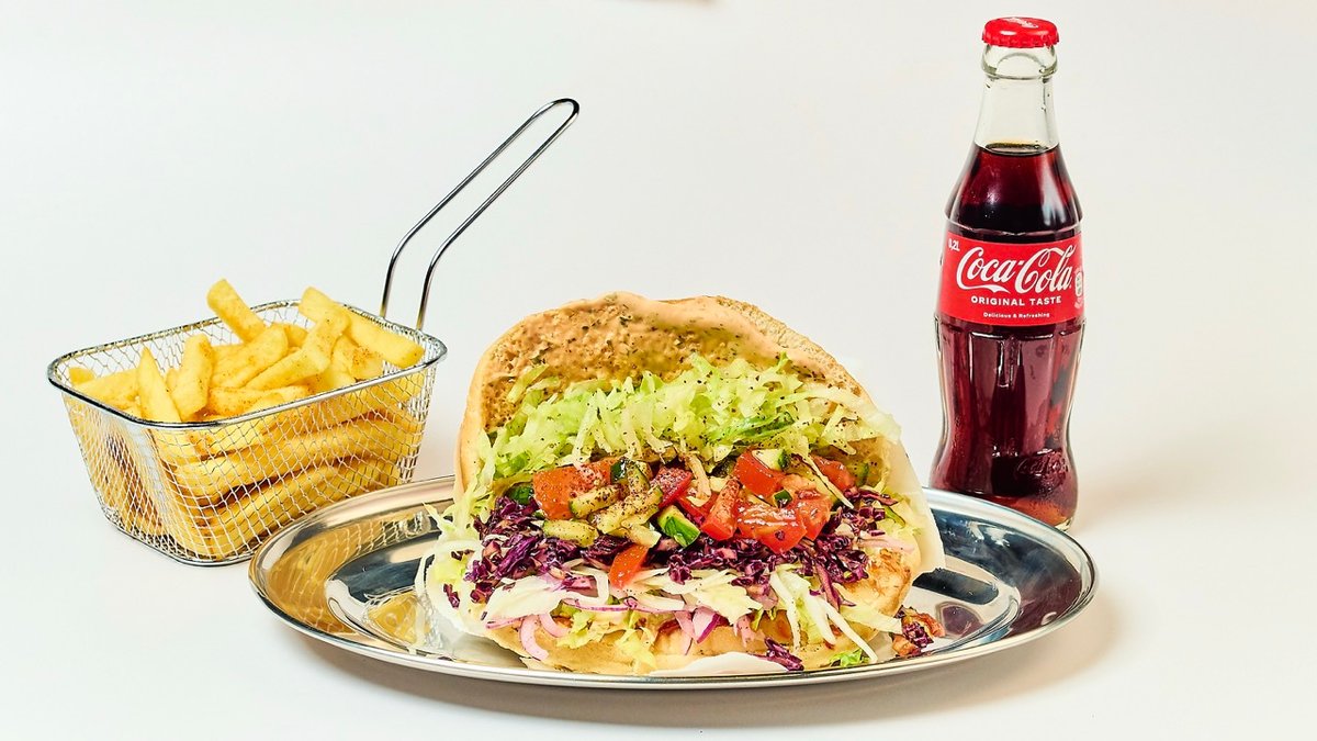 alle Menüs werden mit 1x Pommes frites, Salat, Soße und 1x Softgetränk 0,2 l deiner Wahl serviert