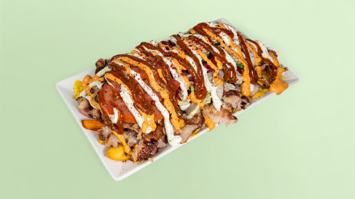 alle Gerichte werden mit Eisbergsalat, Zwiebeln, Rotkohl, Gurken, Tomaten, Mais und zwei Soßen deiner Wahl zubereitet („Kalbfleisch Portion” und „Hähnchen Portion” werden ohne Soße deiner Wahl serviert)