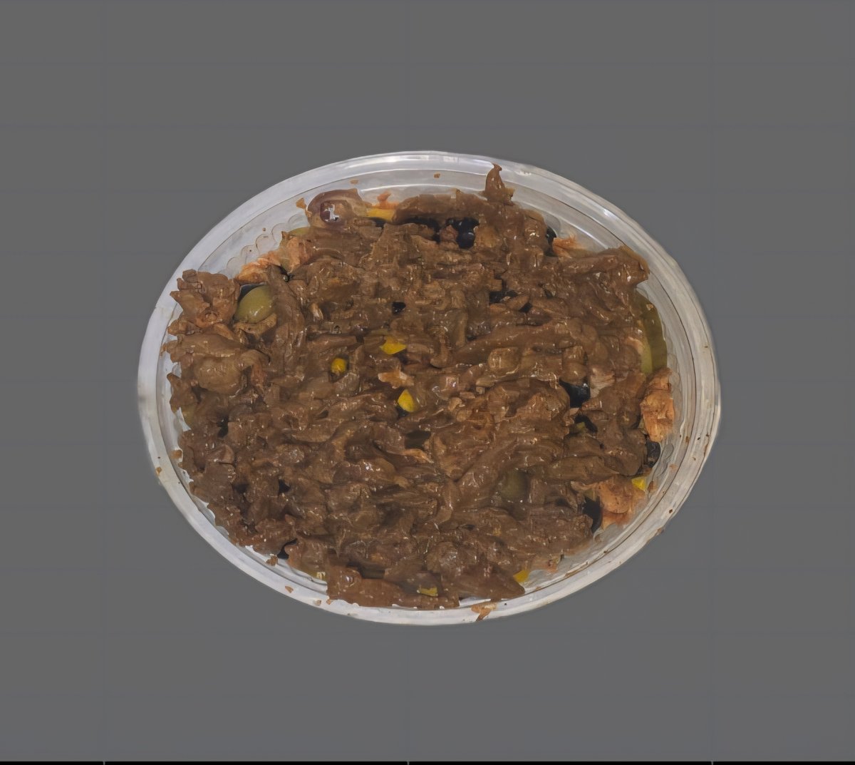 mit Eisbergsalat, Tomaten, Gewürzgurken, Mais, Oliven, Rinderfilet und hausgemachtem Dressing