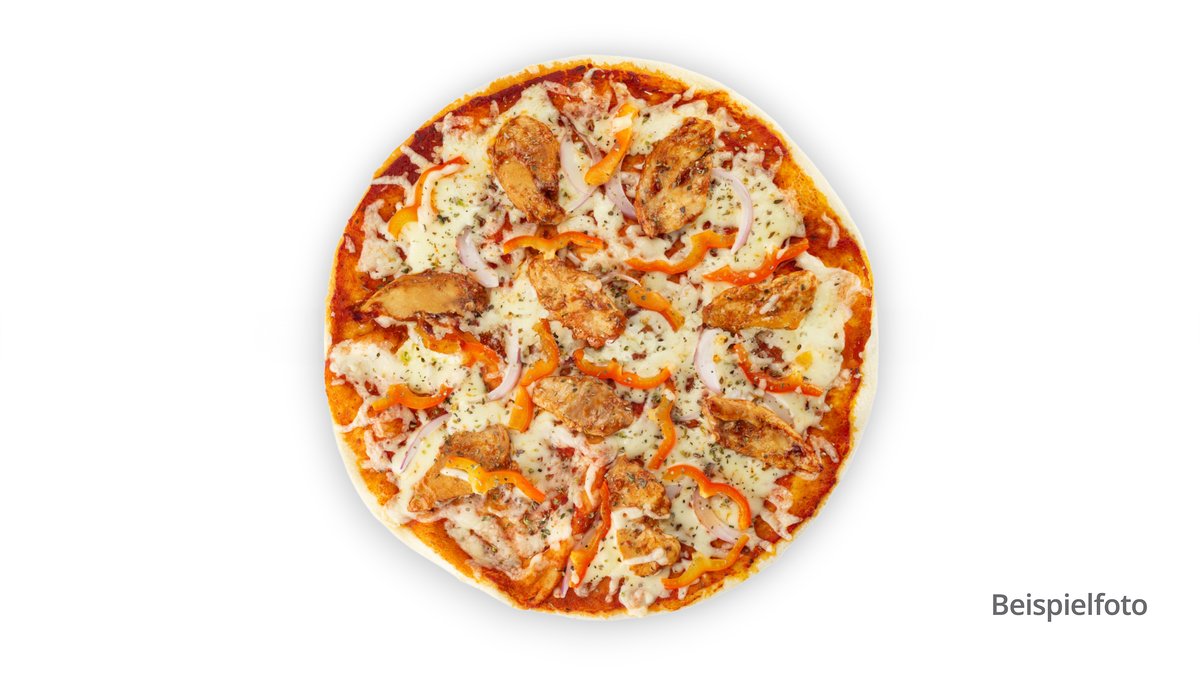mit Plockwurst vom Schwein, Schinken vom Schwein, Champignons und Peperoni