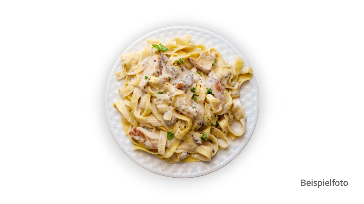 mit Schinken vom Schwein und Ei in Sahnesoße