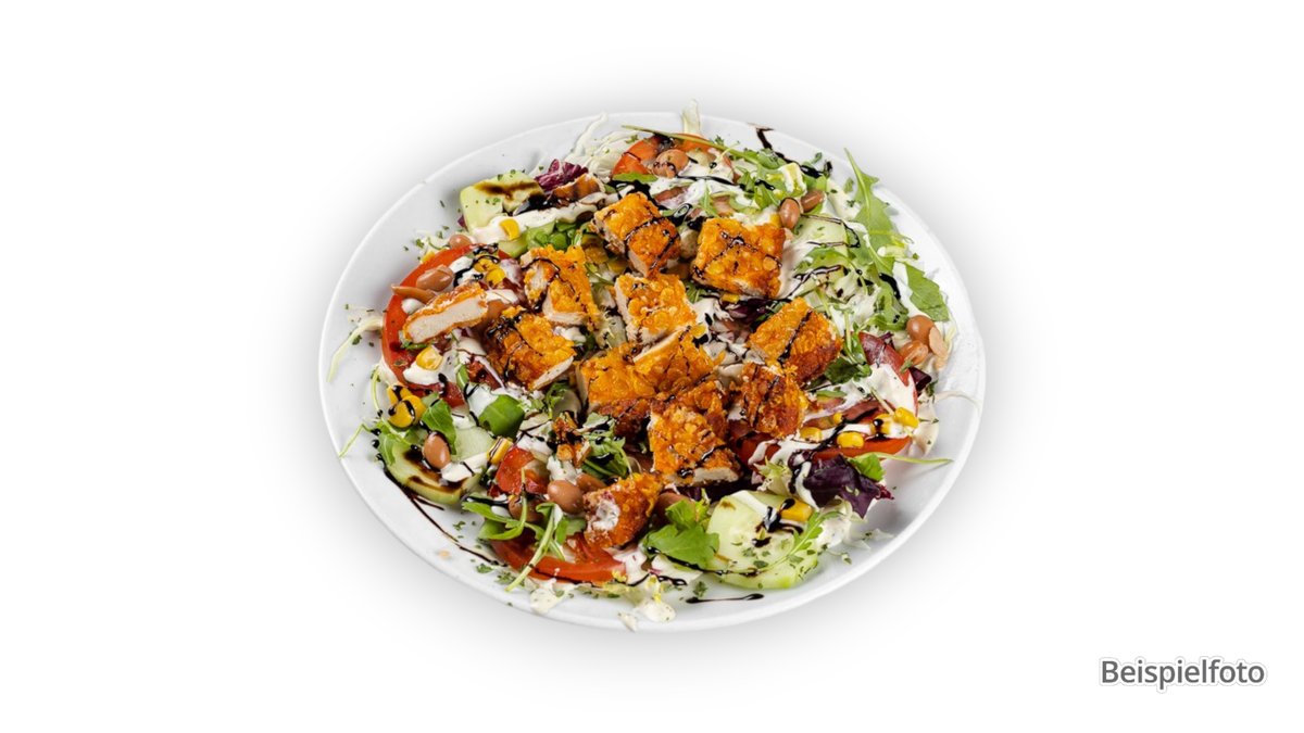 großer gemischter Salat mit Hähnchenstreifen