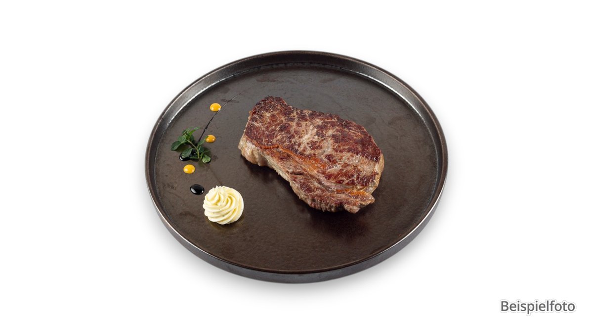 Rumpsteak vom Grill mit Gorgonzolasoße, dazu Kroketten