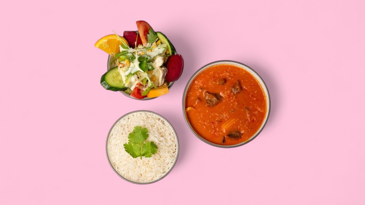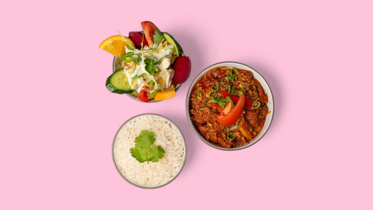 alle Gerichte werden mit bestem Basmatireis und frischem Salat serviert