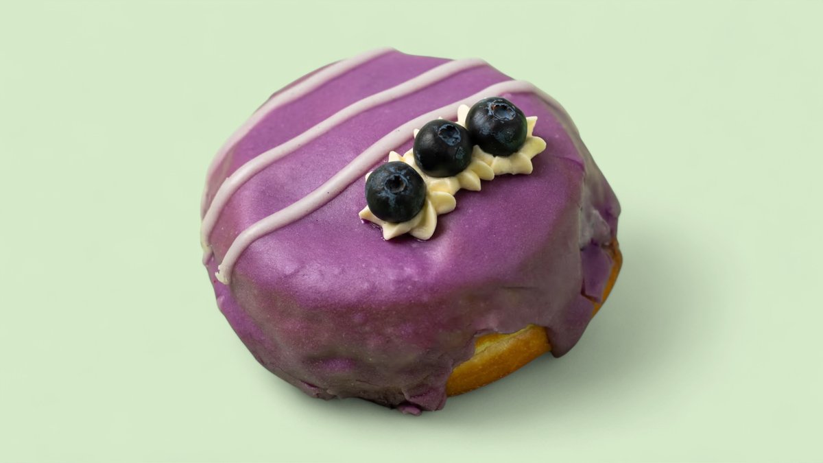 🌱 Vegan - Blaubeer-Creamcheese Füllung, Blaubeerglasur und verziert mit einer frischen Blaubeere.