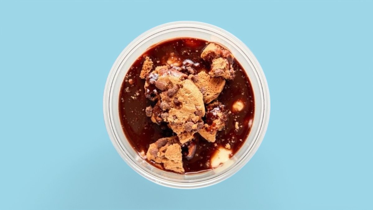 Hausgemachter Milchpudding mit Cookies und Schokosoße