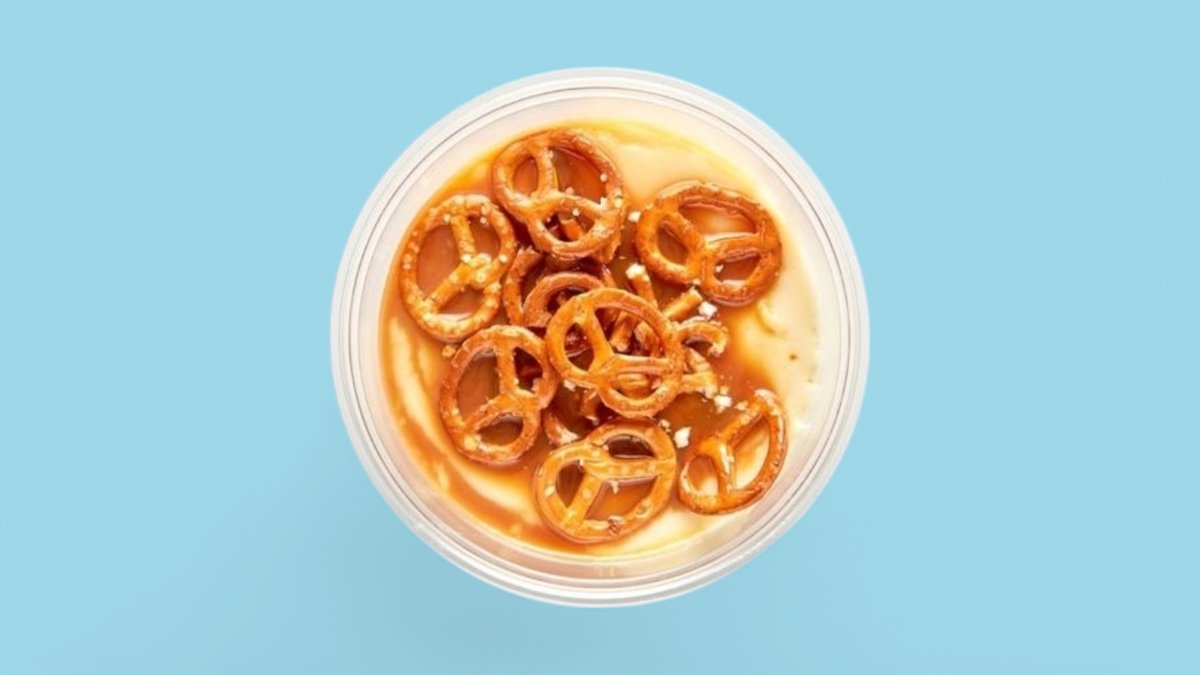 Hausgemachter Milchpudding mit Bretzeln und Karamellsoße