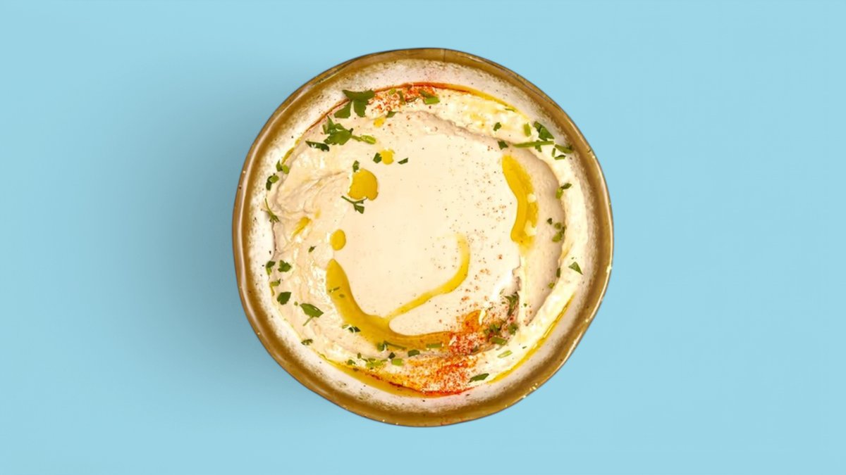 Hausgemachtes Hummus, mit Kichererbsen, Gewürzen, Olivenöl, Petersilie, Sesamsoße und Toast