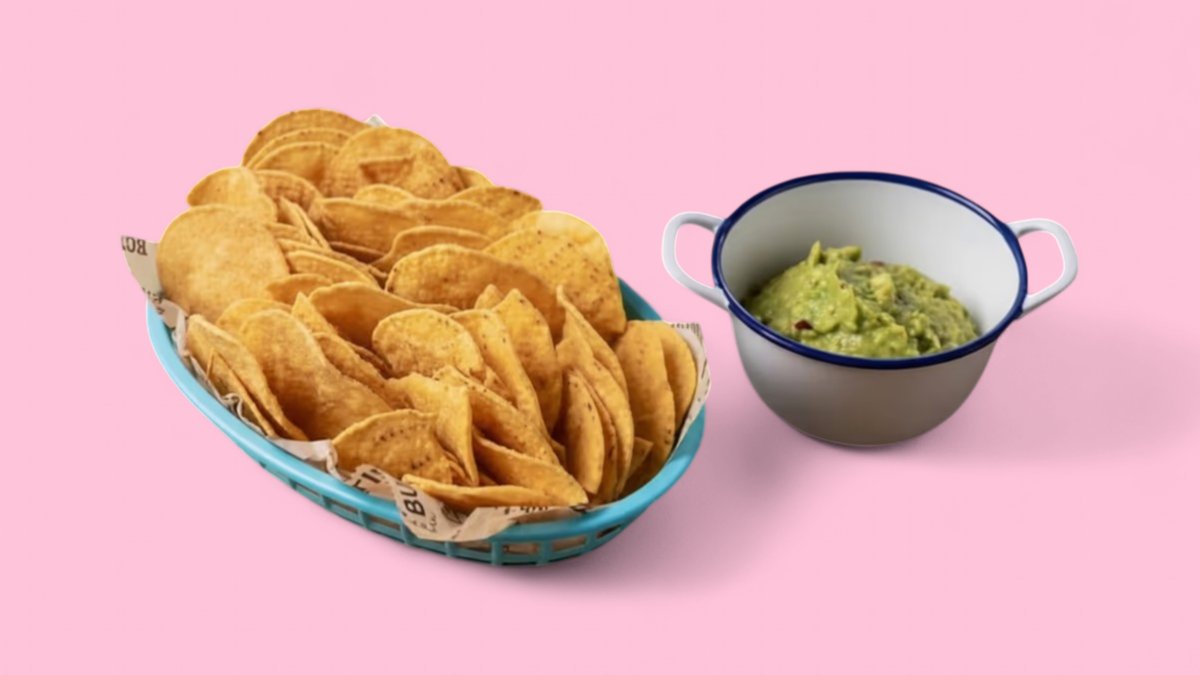 Unsere frische hausgemachte Avocado Sauce mit knusprigen Maistortillachips.