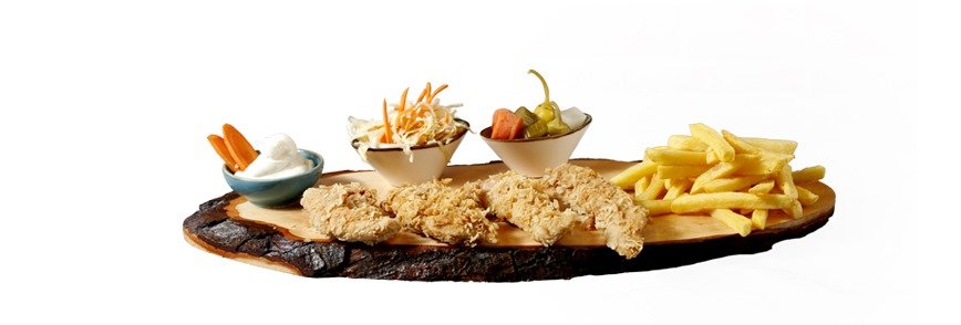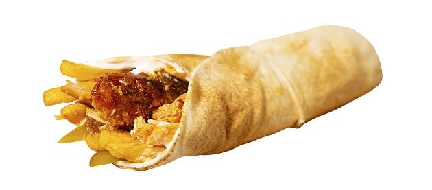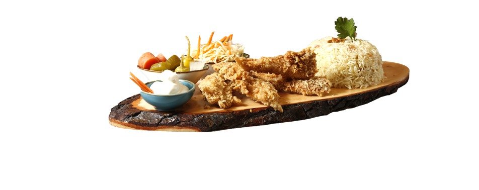 alle Gerichte sind frittiert und werden mit Knoblauchcreme, eingelegtem Gemüse, Krautsalat und scharfem Dip zubereitet