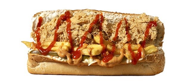 belegtes weiches Baguette mit Cocktailsoße, Krautsalat und 2x knusprigen Teilen