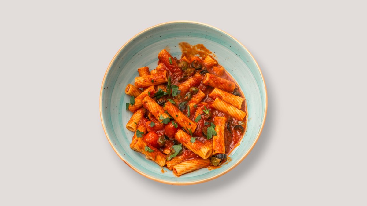 scharf mit Tomatensoße, Kapern, Oliven, Cherrytomaten und Chili