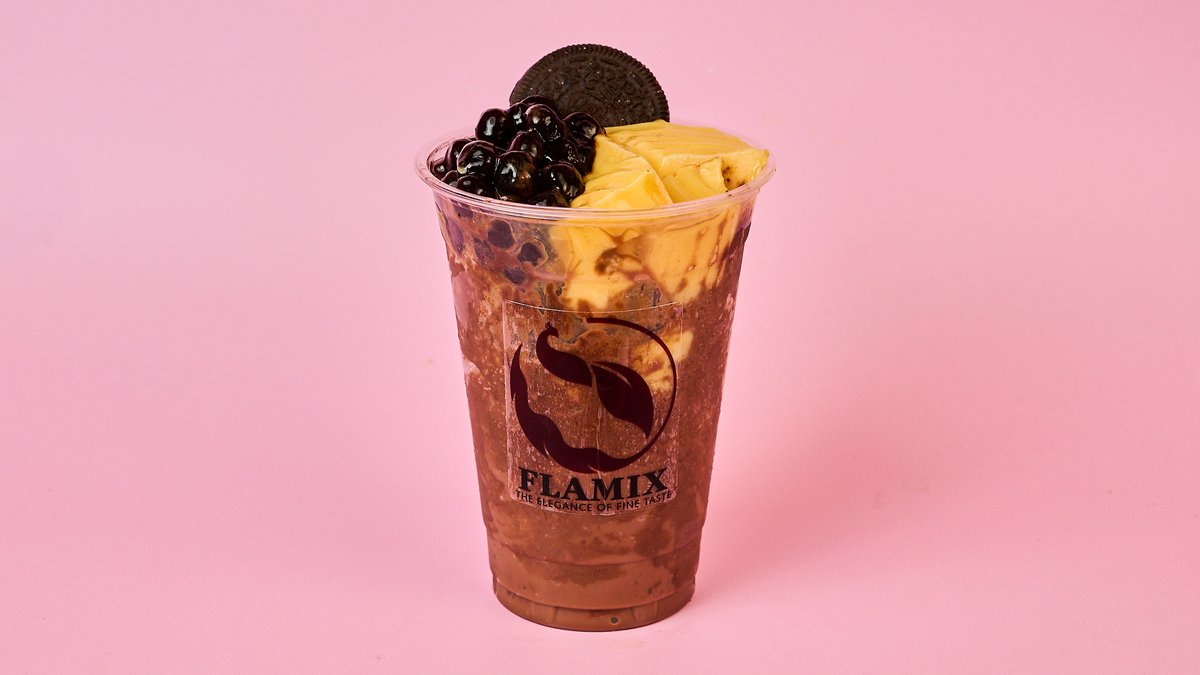 zerkleinertes Milo-Getränk mit Schoko-Topping