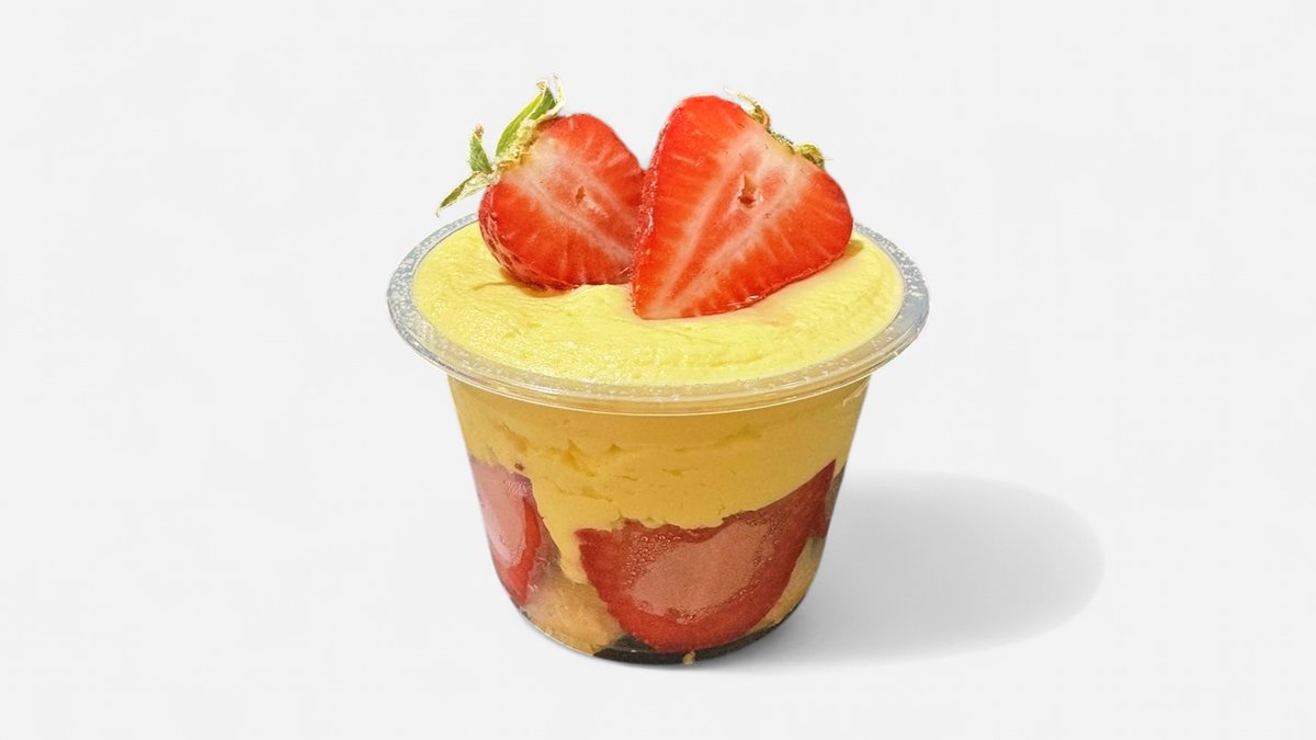 Ein cremiger Smoothie mit dem reinen, süßen und fruchtigen Geschmack von frischen Erdbeeren.