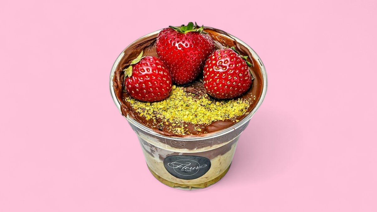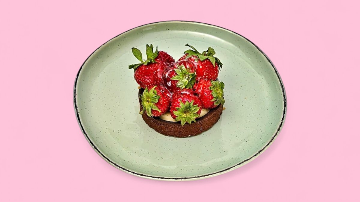 mit Erdbeeren und Schokolade Das Gericht wurde mit Schokolade zubereitet und kann Spuren von verschiedenen Nüssen enthalten