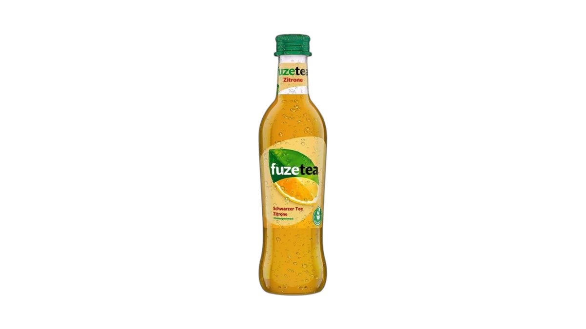 Eisteegetränk mit Zitronengeschmack, Zucker, enthält Schwarzteeextrakt, mit Kohlensäure