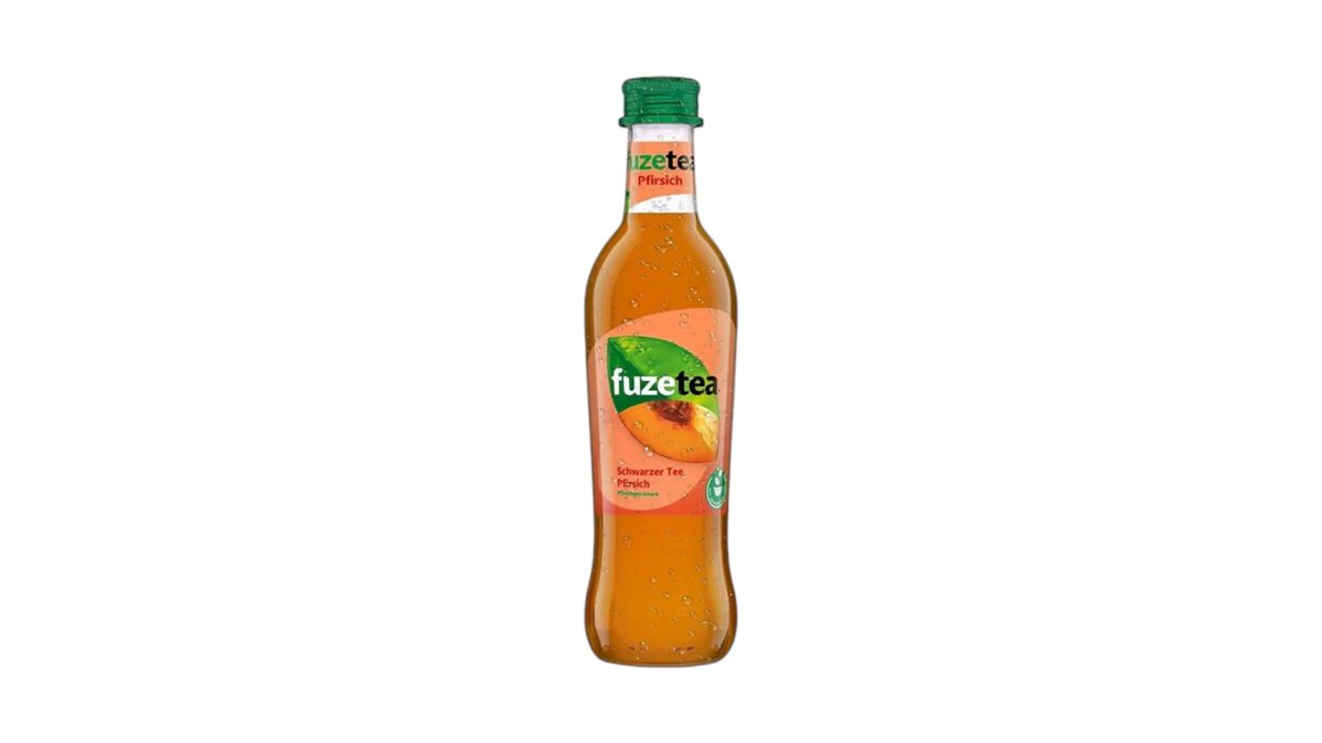 Eisteegetränk mit Pfirsichgeschmack, Zucker, enthält Schwarzteeextrakt, mit Kohlensäure