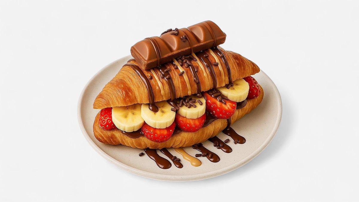 La Francaise Croissant mit 2 Soßen, 1 Topping & 2 Früchte nach Wahl.