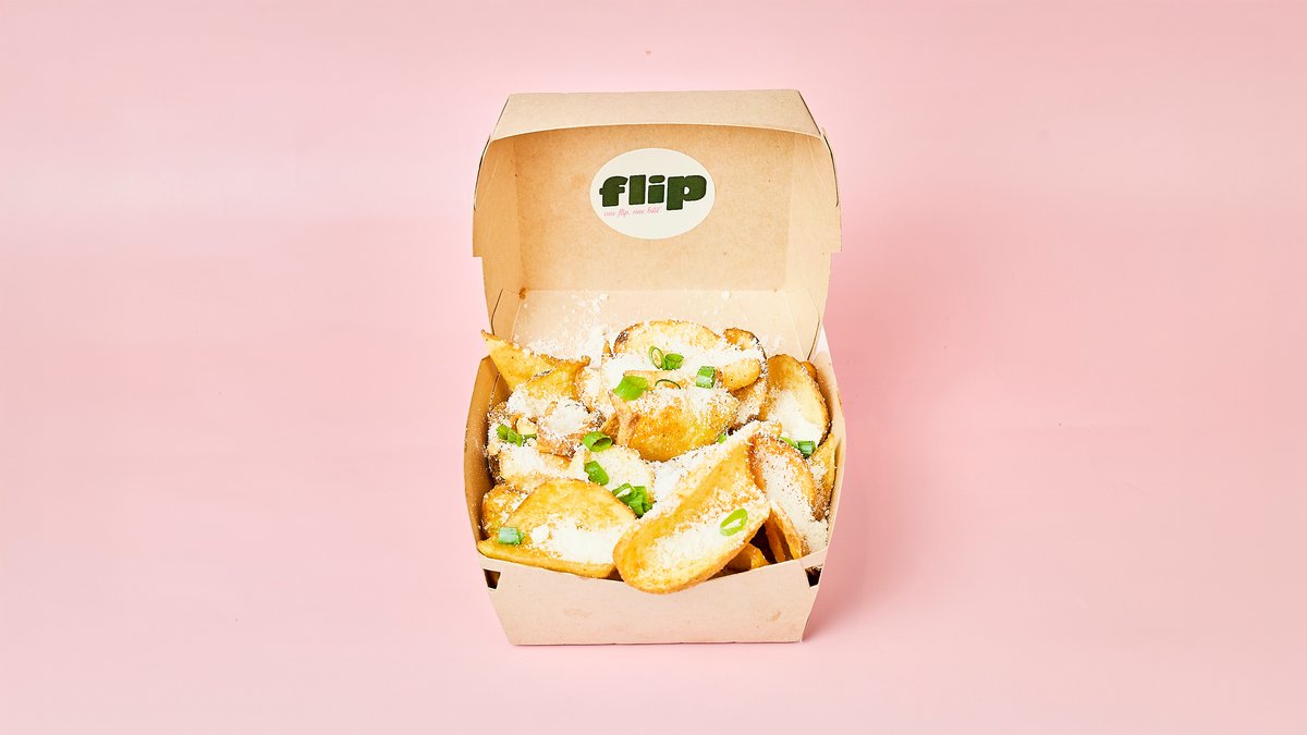 Dipper Potatoes mixed with intense homemade Garlic Oil & topped with fresh parmesan Cheese & Herbs