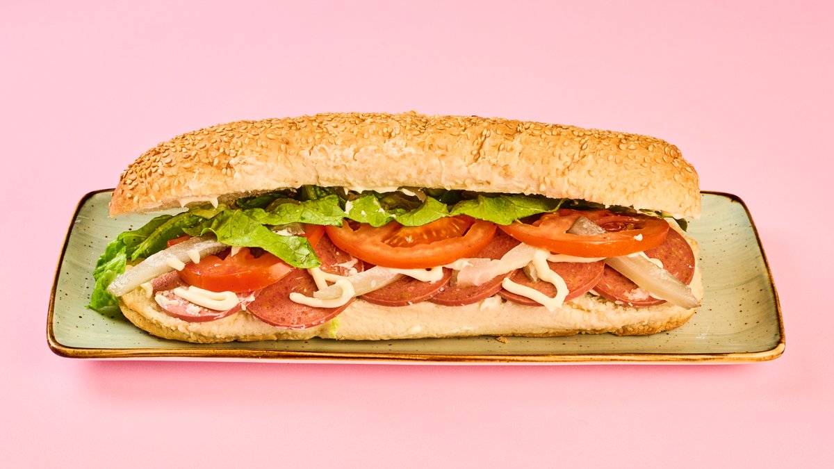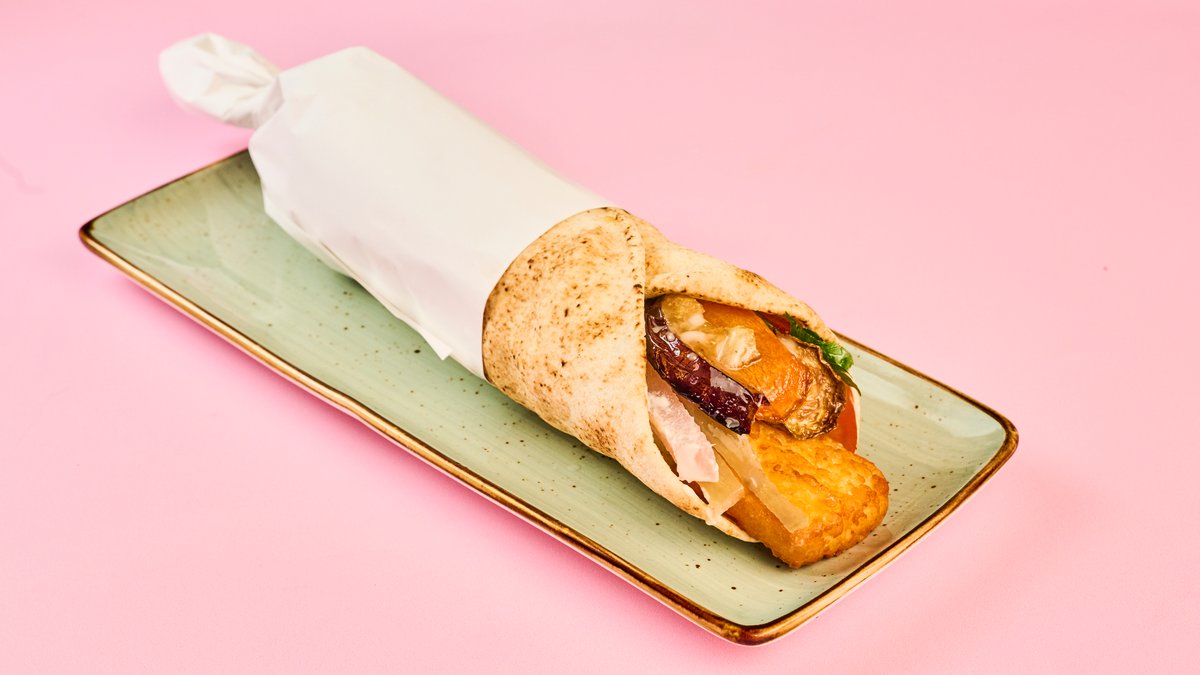 mit Halloumi, Tomaten, Salat, Petersilie, Minze, Zwiebeln, eingelegten Gurken, Rübe und Tahini
