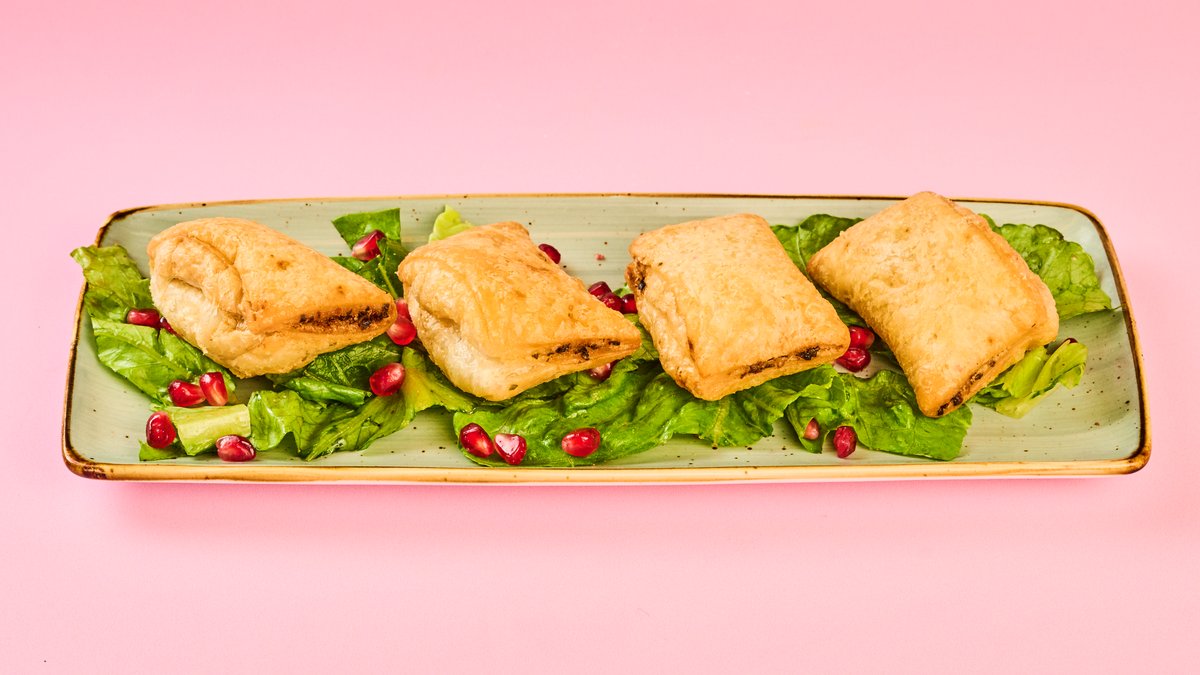 mit Tomaten, Gurken, Salat, Petersilie, Minze, Feldsalat, Olivenöl, Salz, Granatapfelsirup und Fladenbrot