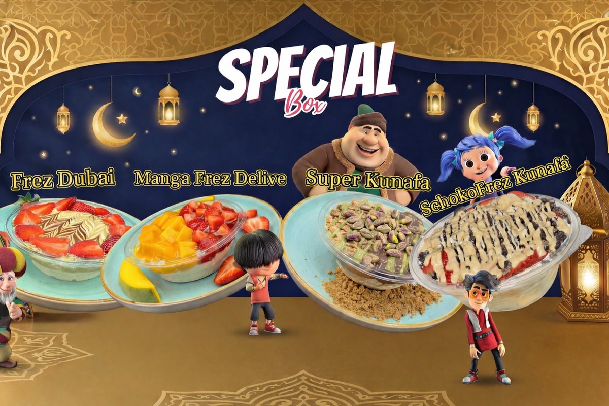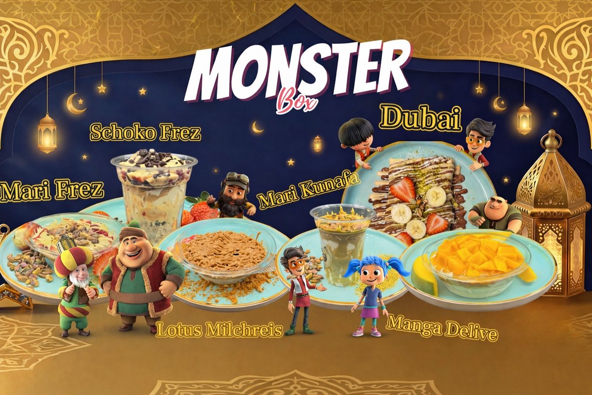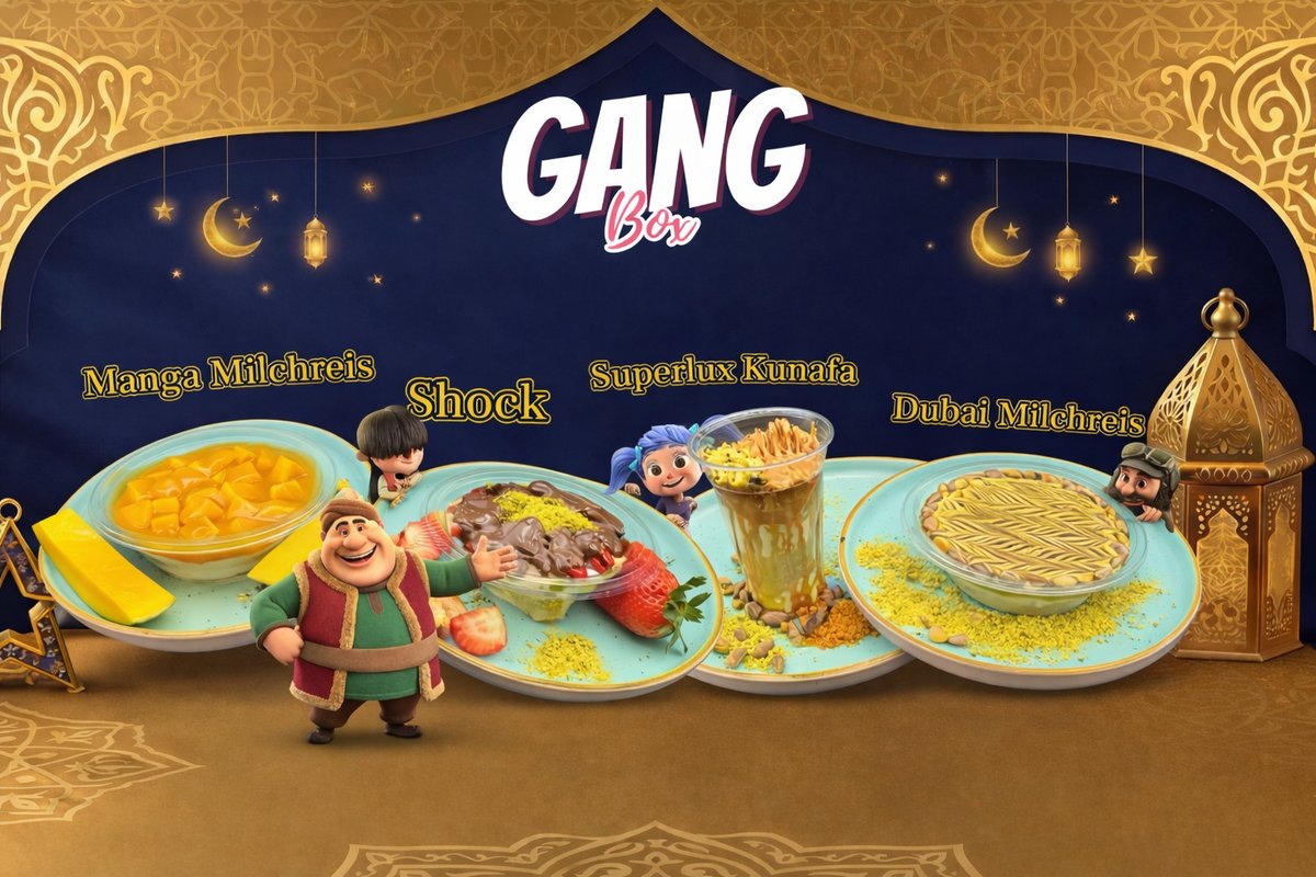 1x Dubai Crêpes, 1x Manga Delive, 1x Frez Kunafa, 1x Mari Kunafa, 1x Mari Ferz Milchreis, und 1x Lotas Milchreis.