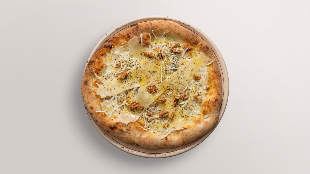 mit gesalzenem Ricotta, Mozzarella Fior di Latte di Agerola, Gorgonzola DOP, Parmesan, Walnüssen und Rosmarin
