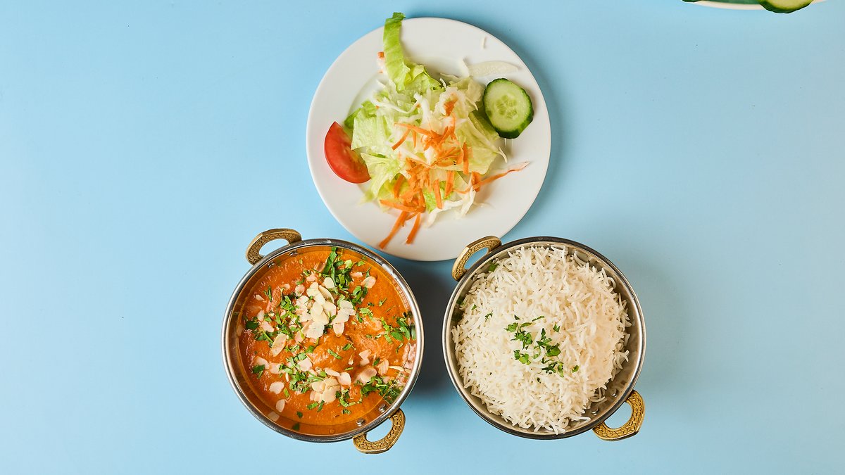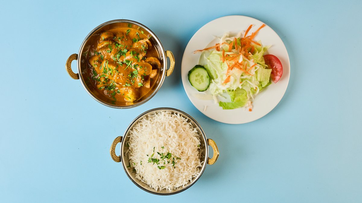 alle Gerichte werden mit Hähnchenfilet zubereitet und mit Basmatireis serviert