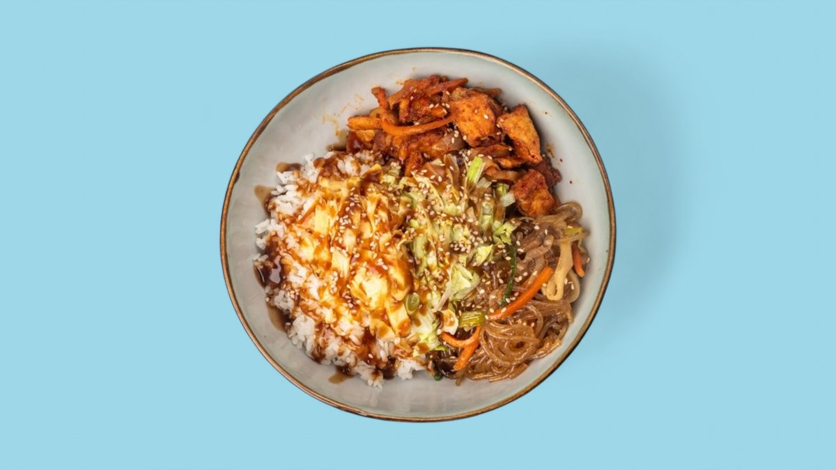 mit Hähnchenfleisch, Pommes frites, Reiskuchen und in einer Größe deiner Wahl