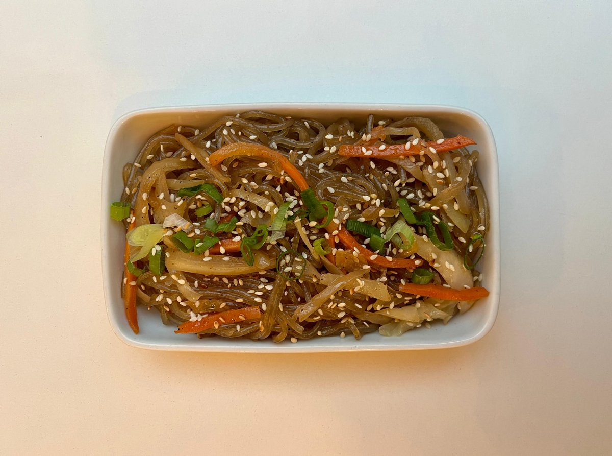 alle Gerichte werden mit verschiedenem angebratenem Gemüse, hausgemachtem koreanischem Gewürz und Soße, Reis und Nudeln serviert