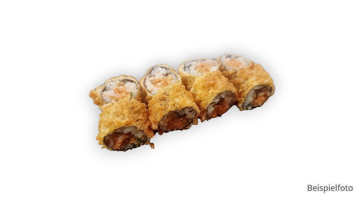 mit 8 Surimi Tempura Roll, 8 Lachs Tempura Roll und 8 Chicken Tempura Roll